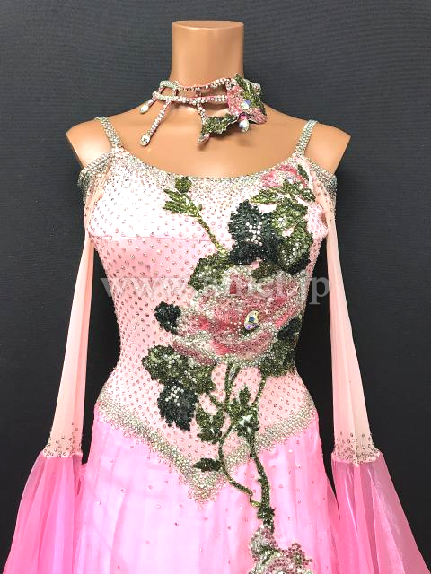 ピンクのボディにフラワーモチーフが美しいドレスです。