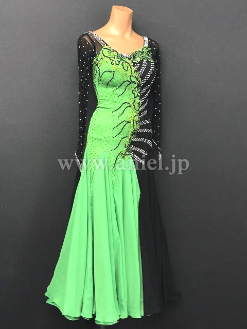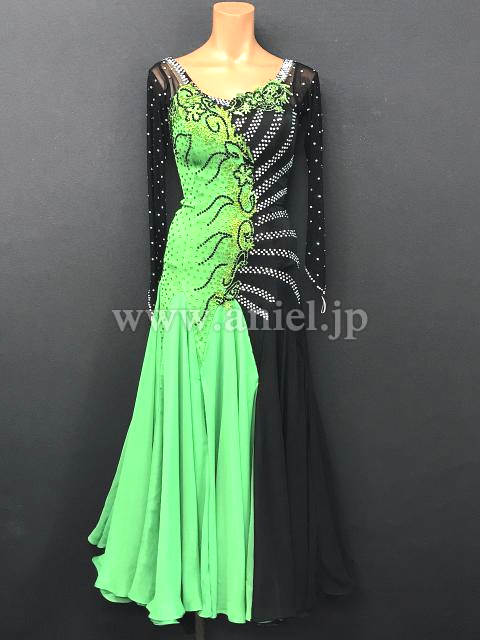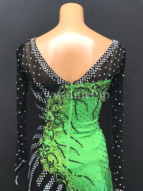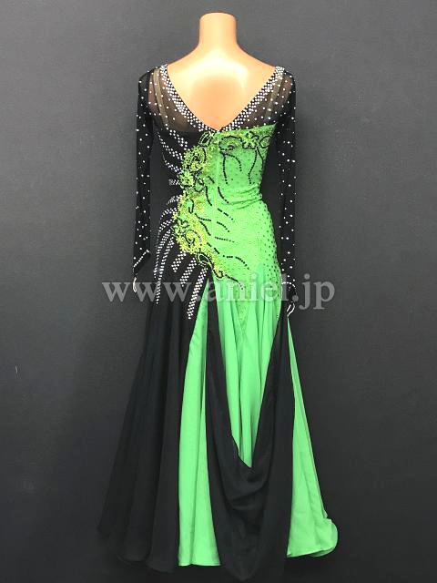 黒と緑の切り返しがインパクトのあるドレス。