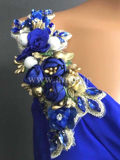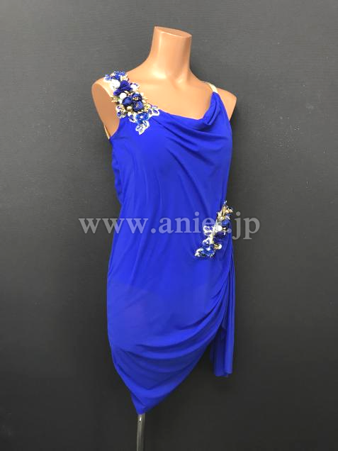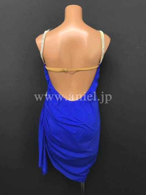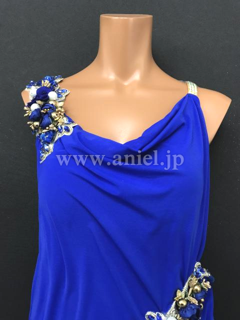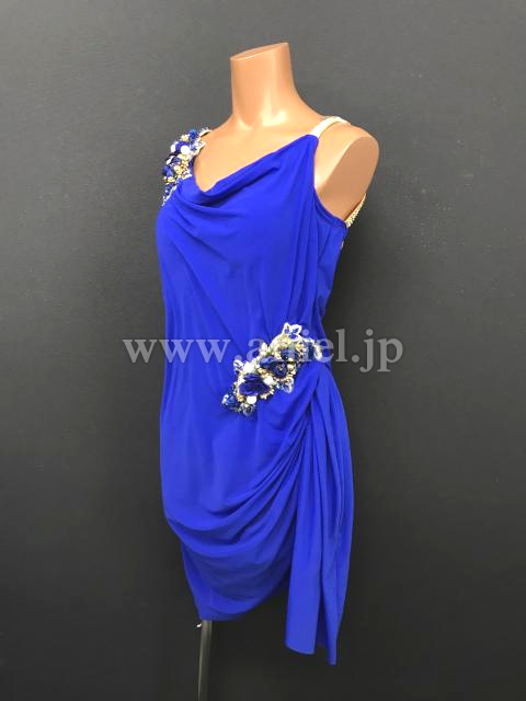 ドレープが美しく揺れるロイヤルブルーカラーのワンピースドレス。
