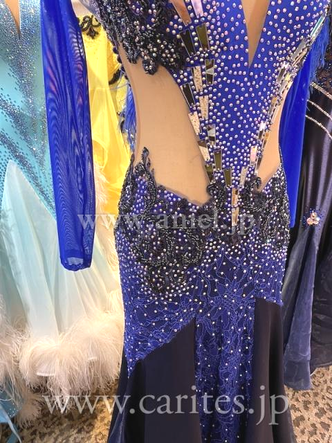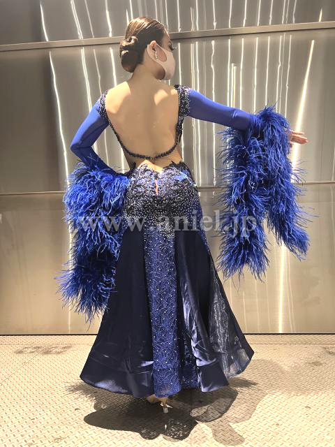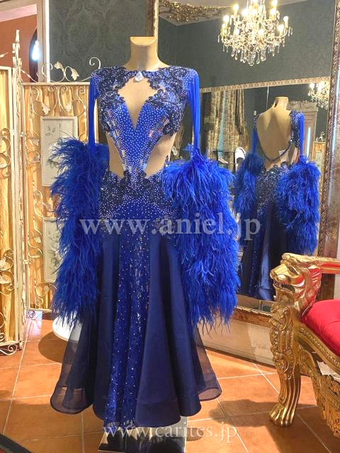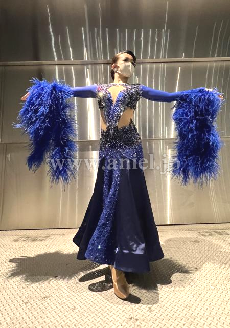 ロイヤルブルーとネイビーを組み合わせた、ファーたっぷりのドレス。
