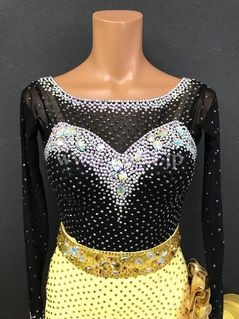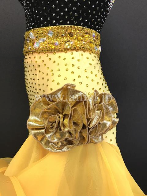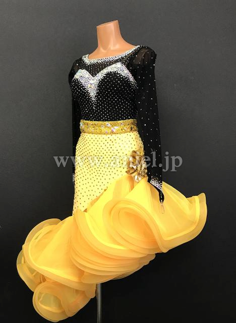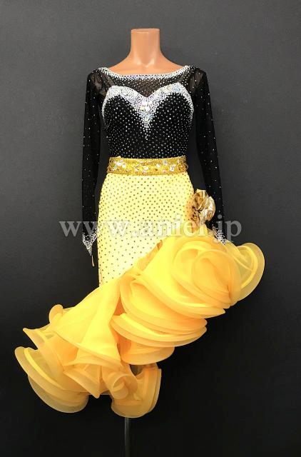 黒と黄色の斜めフリルスカートが可愛いドレス。