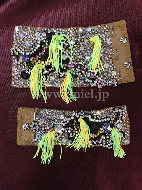 ボディはモチーフレースにカラフルなストーンで華やかに装飾されています。