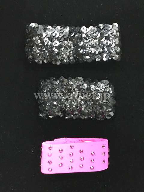 黒のスパンコール生地のボディには大粒のスワロフスキーが装飾されています。