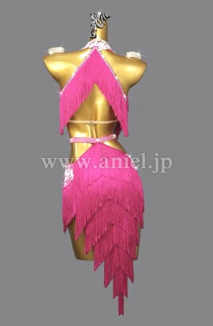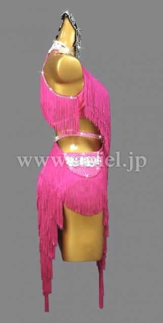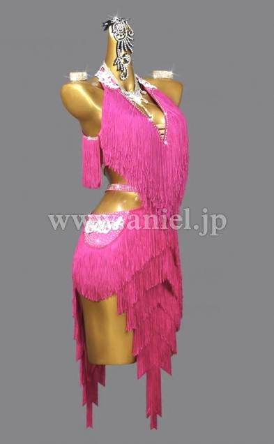 濃いピンクのフリンジドレスです。