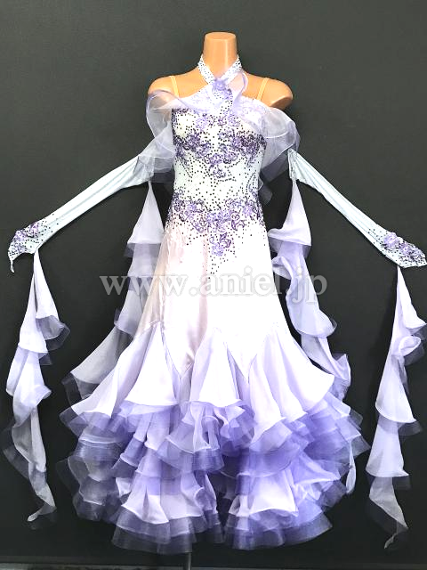 淡いラベンダーカラーがエレガントなドレスです。