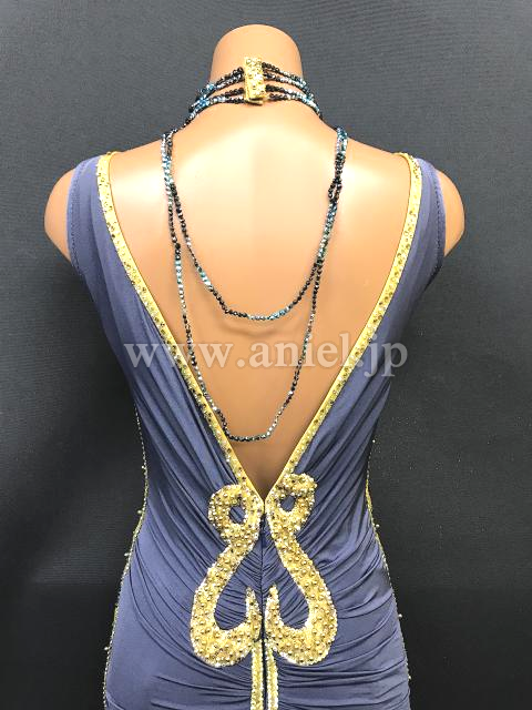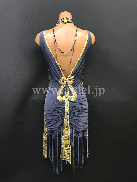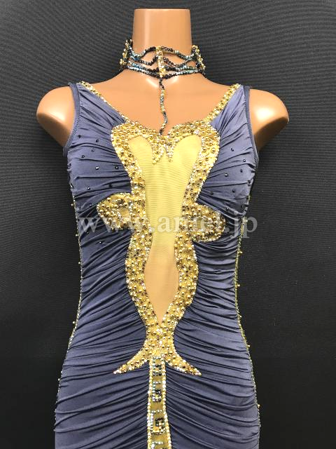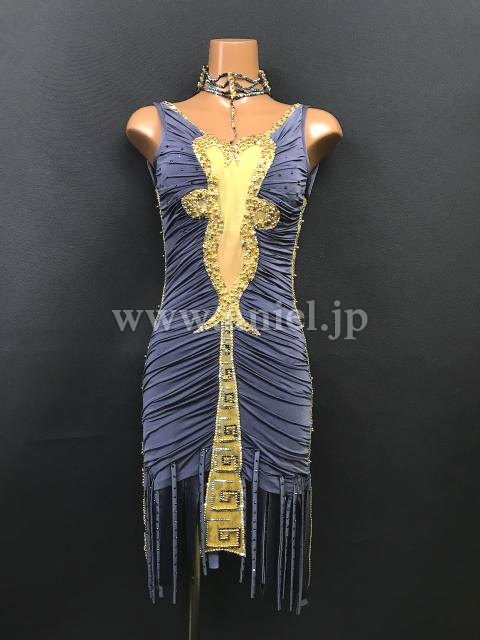 上品なグレーにゴールドがきらびやかなドレスです。