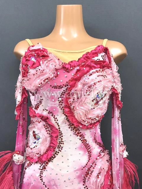花模様に立体の刺繍が施された個性的な装飾のドレス。