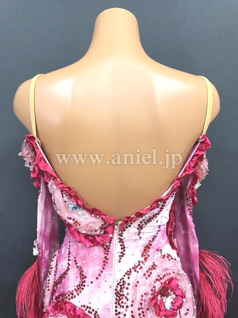 染められたピンクの生地が複雑なニュアンスを出しています。