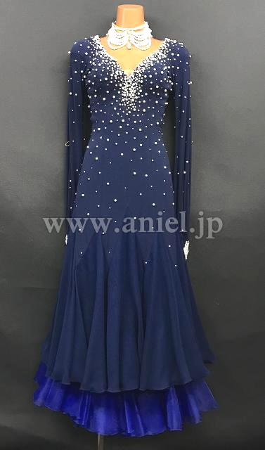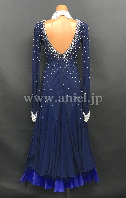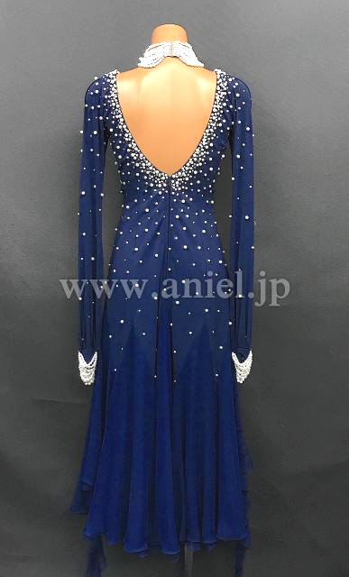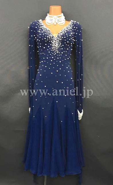 ネイビーカラーにホワイトパールの装飾がエレガントなドレスです。