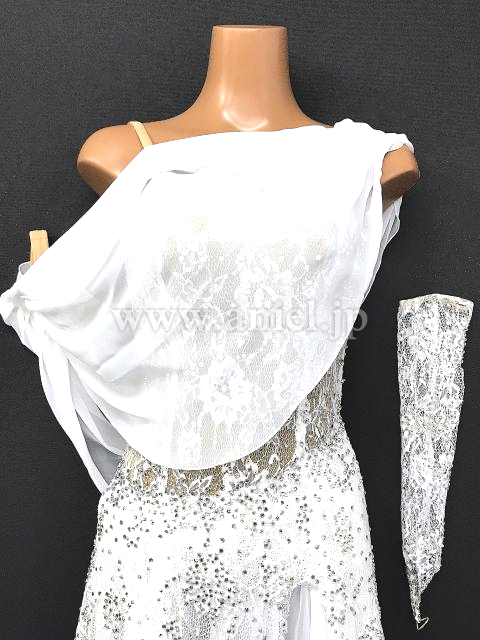 繊細なレースにオーロラストーンが散りばめられたエレガントなドレスです。