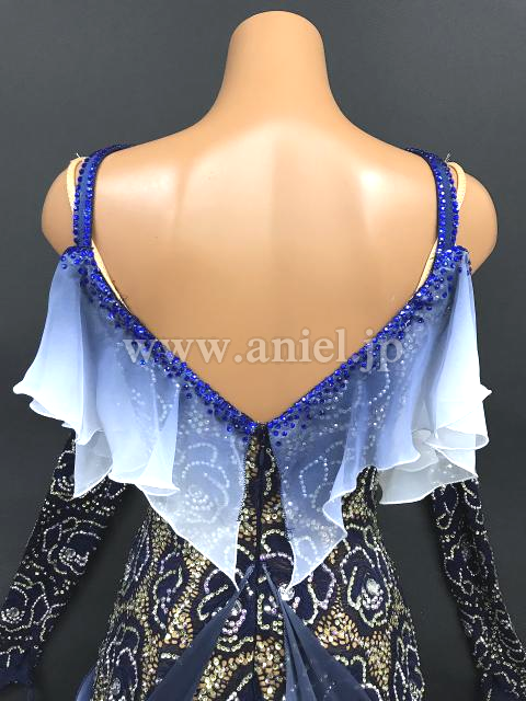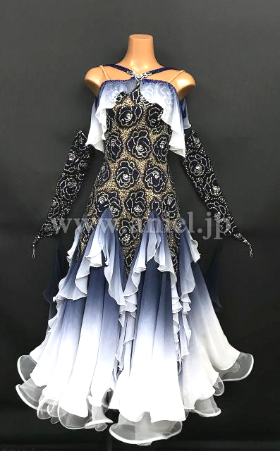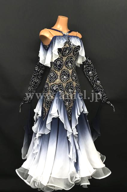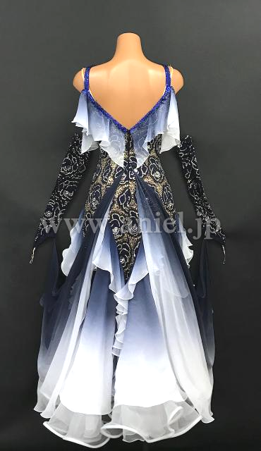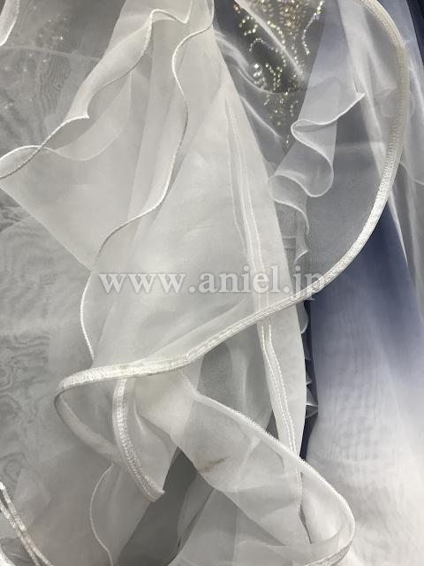 グラデーションカラーのオフショルダーフリル、スカートが綺麗です。