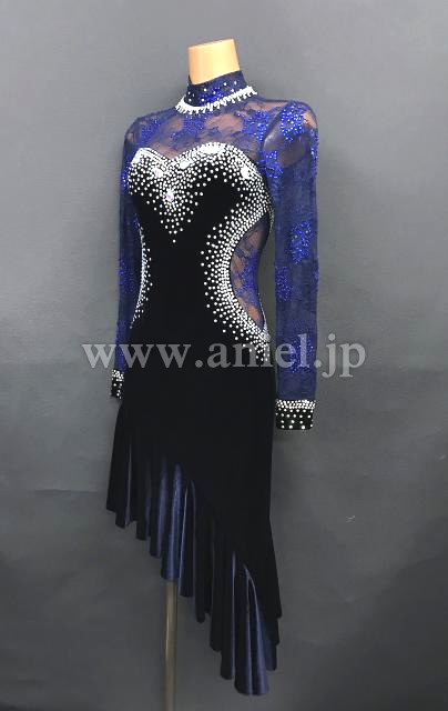 ベルベットのシックなボディにレースの袖がエレガントなワンピースドレスです。