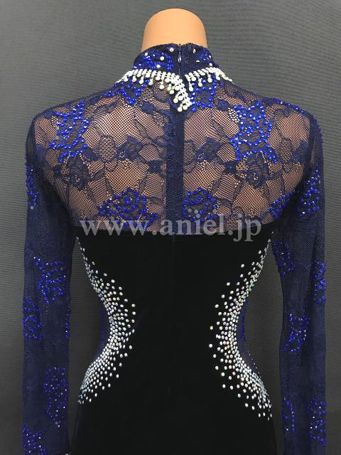 ボディにはオーロラ、袖には青のストーンが飾られています。