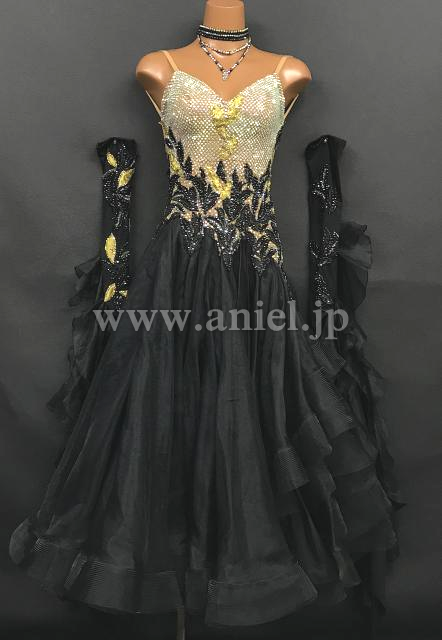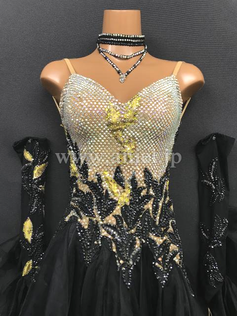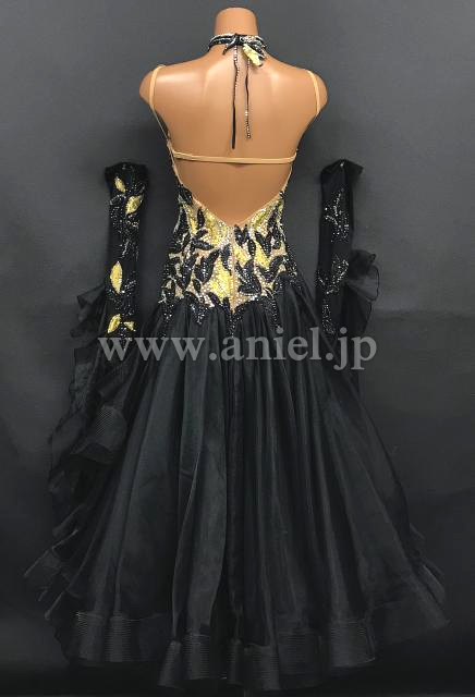 黒とゴールドの装飾がシックでかっこいい雰囲気のドレスです。