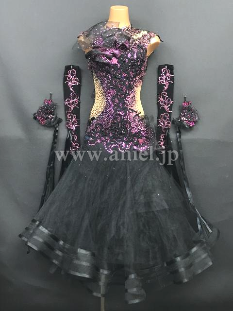 黒にピンクの装飾が可愛らしいドレスです。