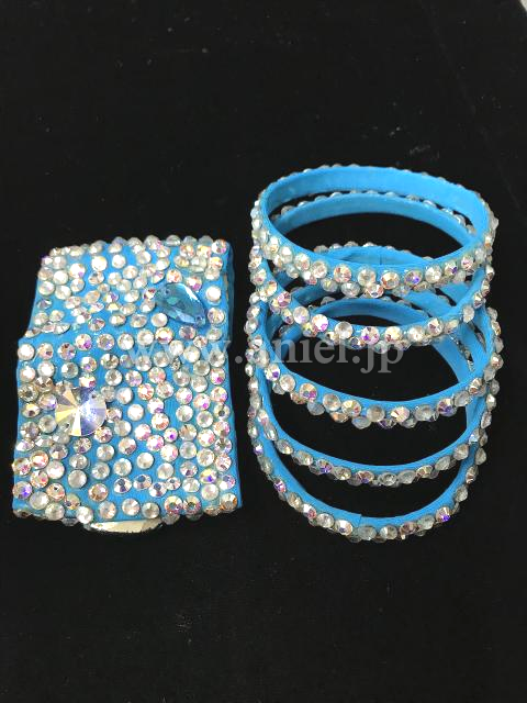 胸元はストーン、スパンコールで装飾されています。
