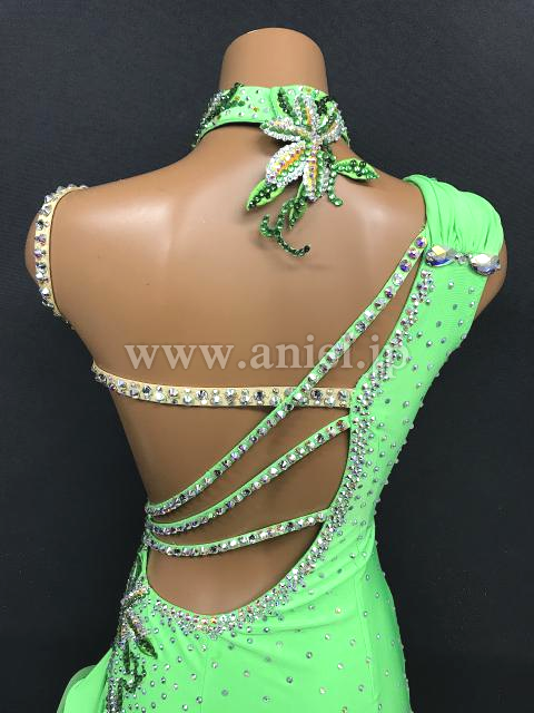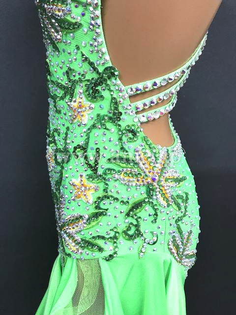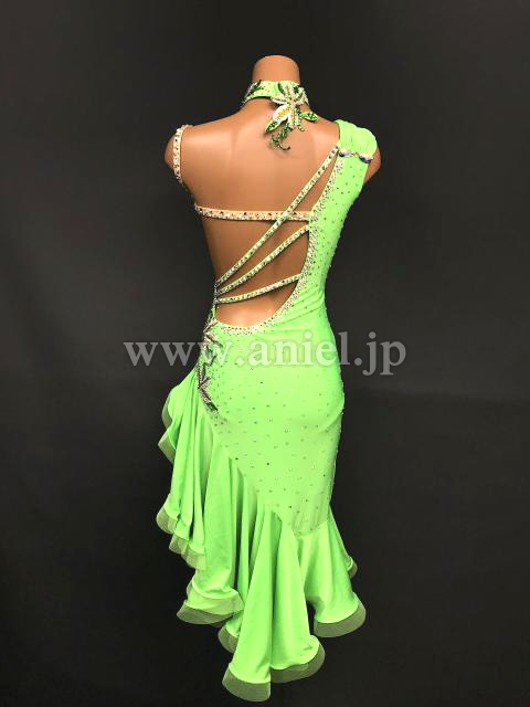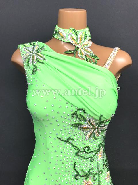 鮮やかな黄緑のドレスです。