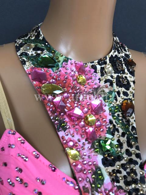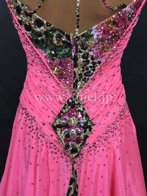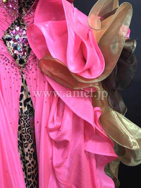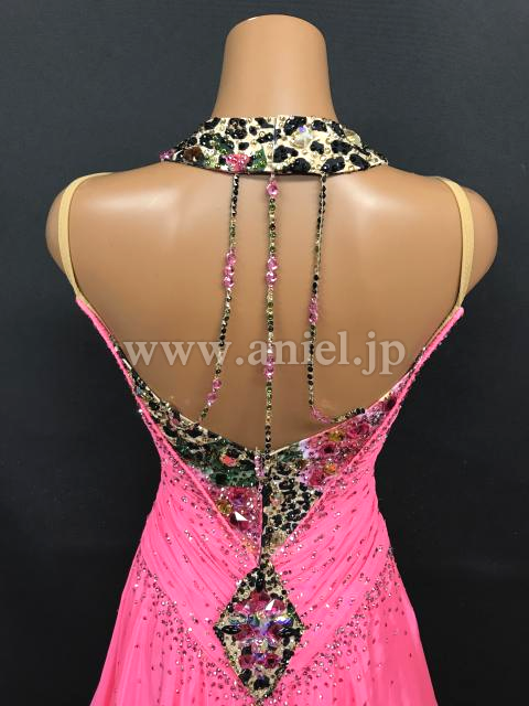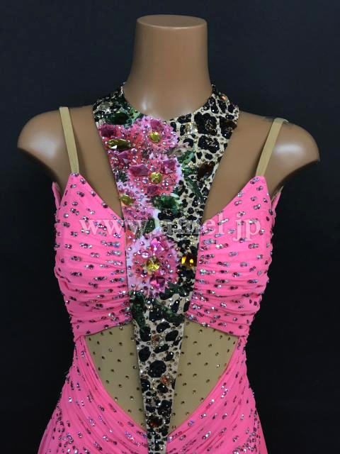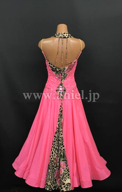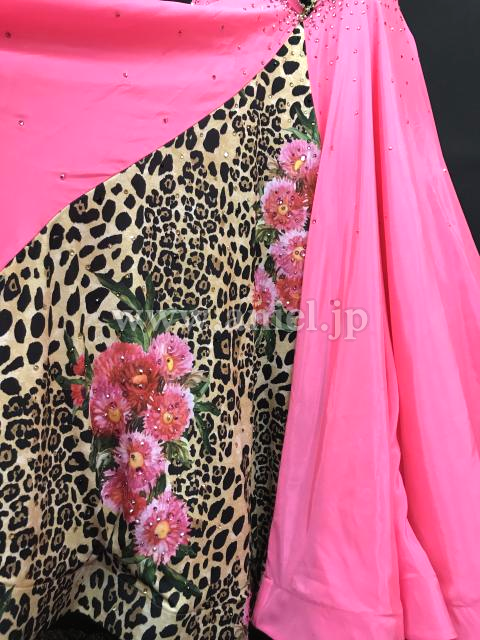 鮮やかなピンクにヒョウ柄がアクセントになっているドレスです。