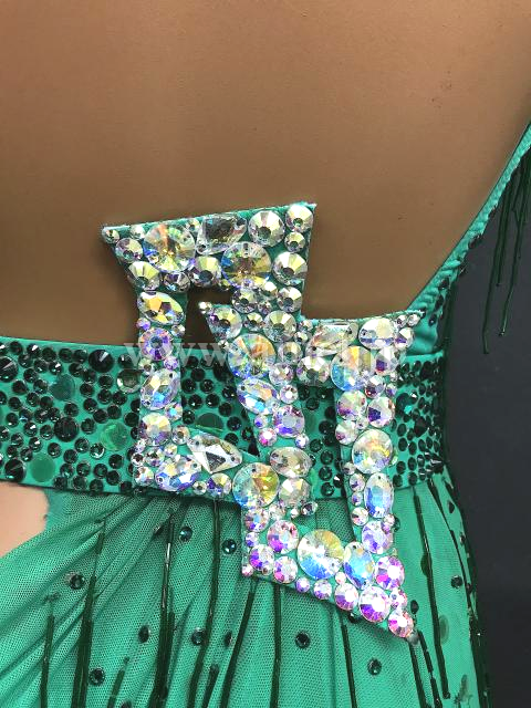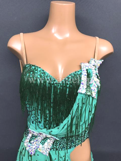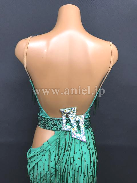 ベルトでスタイルよく見えるデザイン。フリンジ、ビーズフリンジがよく踊ります。