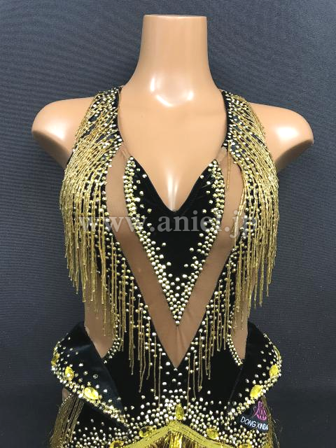 ペプラムデザインにビーズフリンジ、ストーンが光ります。