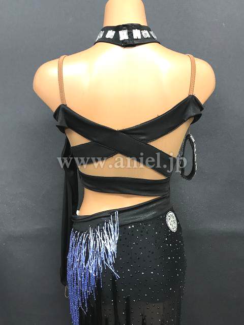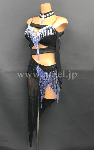 スカートはシースルー素材に黒のフリンジとストーンが装飾されています。