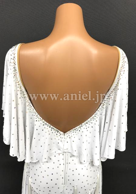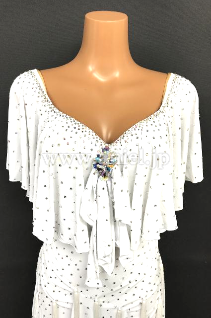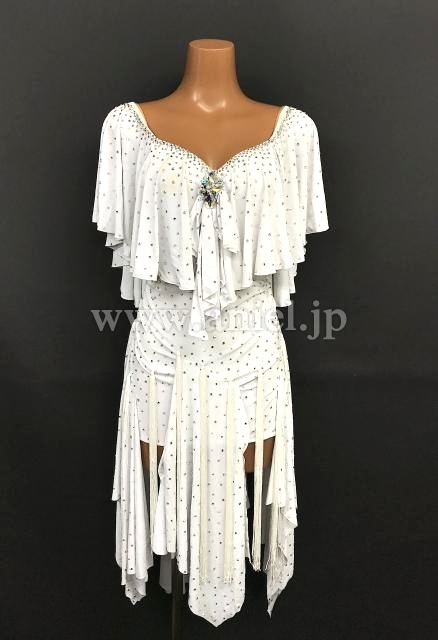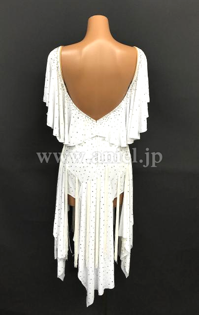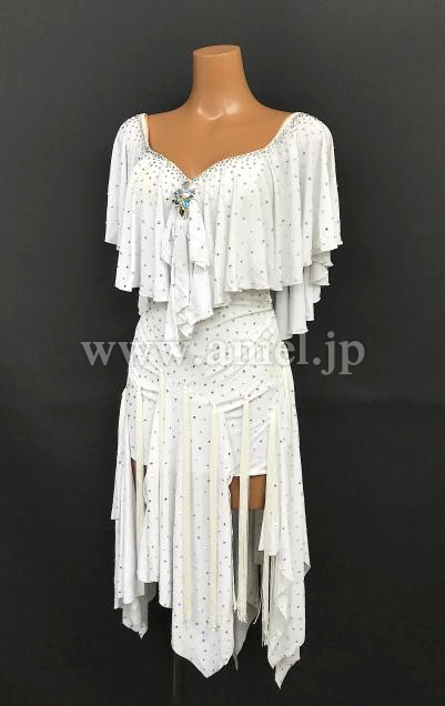 トップのドレープスカートのロングフリンジがよく踊ります。