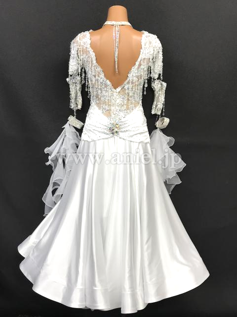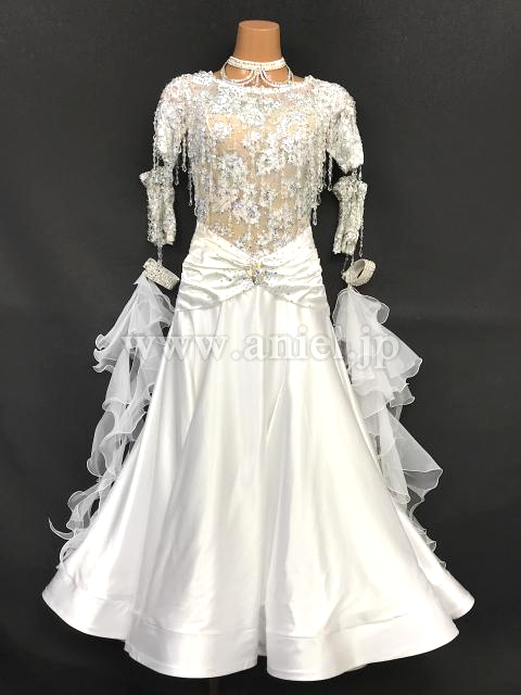レースモチーフの装飾が美しいホワイトドレスです。