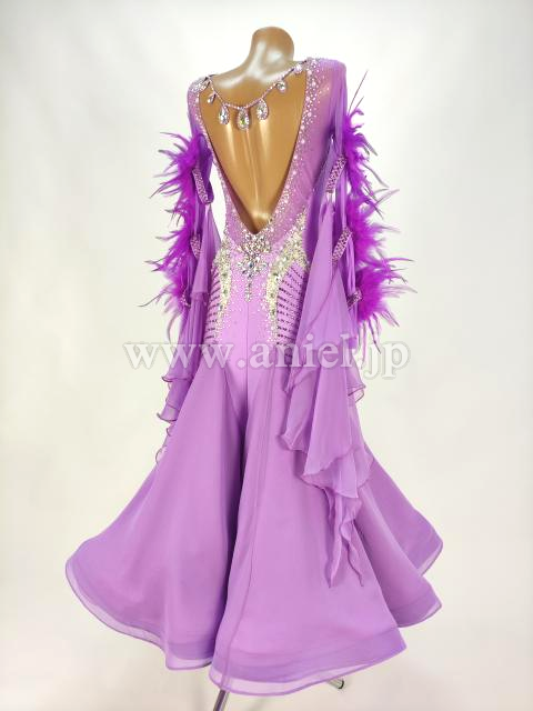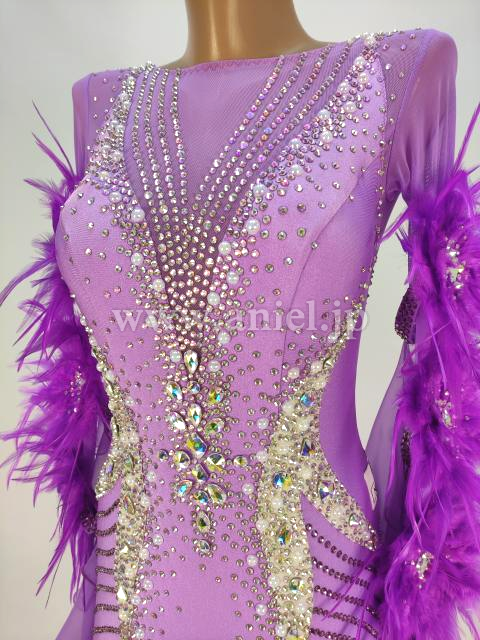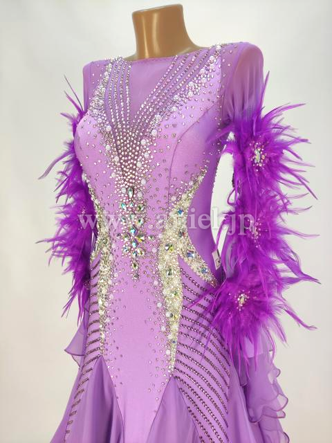 流行りの羽根を使った袖飾りが印象的。