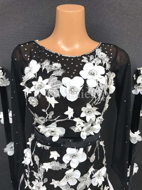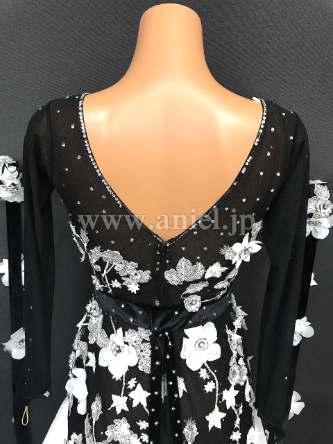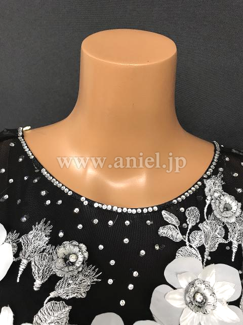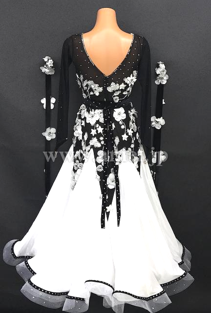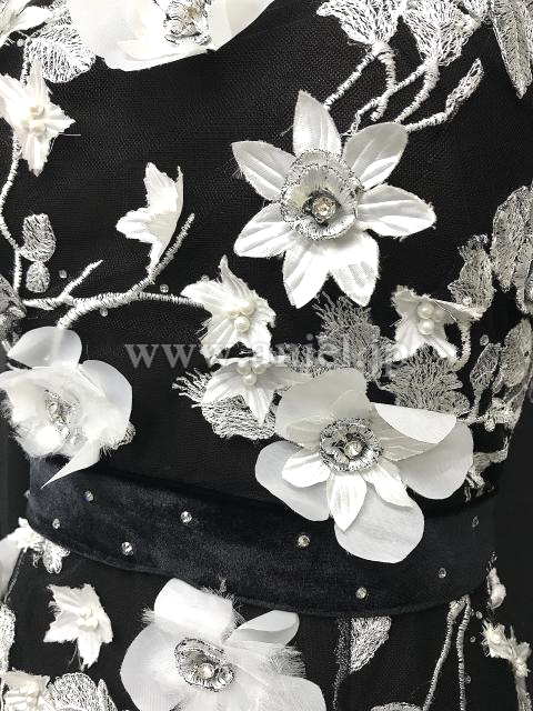 黒に白の花モチーフが映えるドレスです。