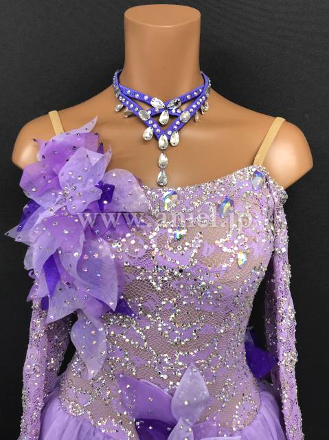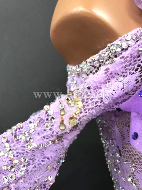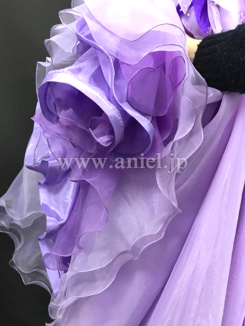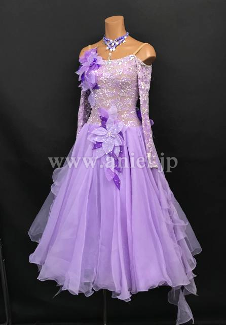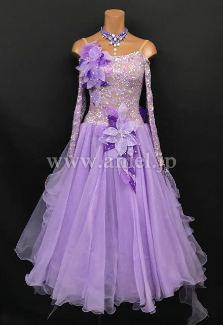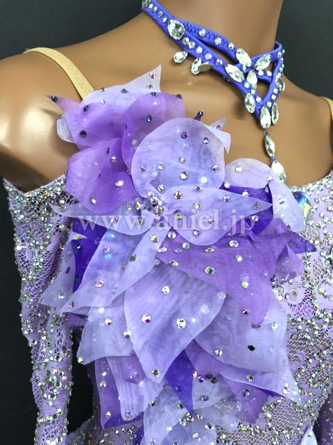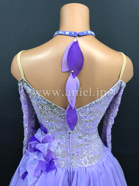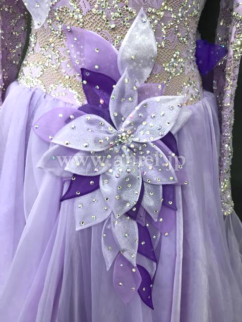 立体の装飾が可愛らしいラベンダーカラーのドレスです。