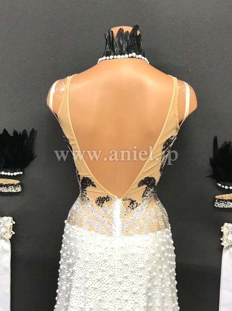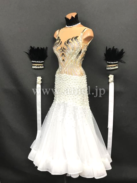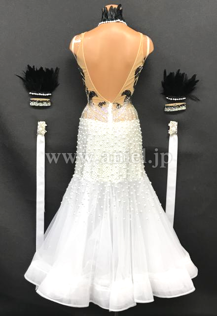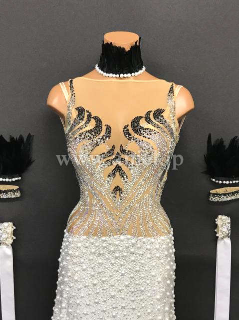 マーメイドラインのスカートにもストーンとパールがびっしり。