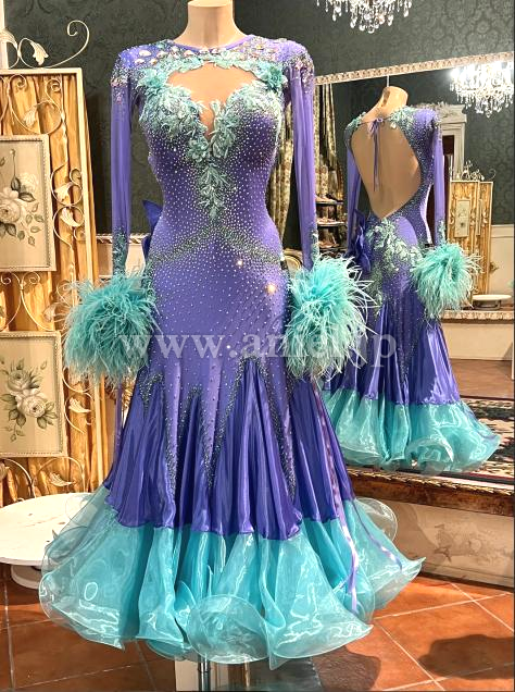 水色と紫の組み合わせが可愛らしいバイカラードレス。