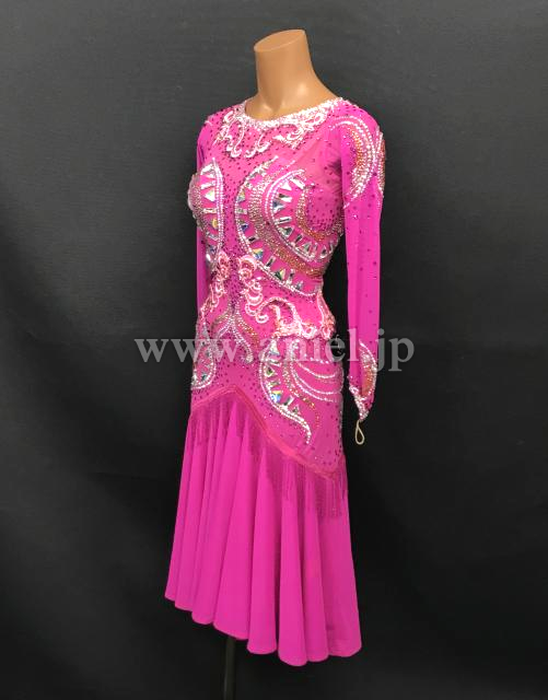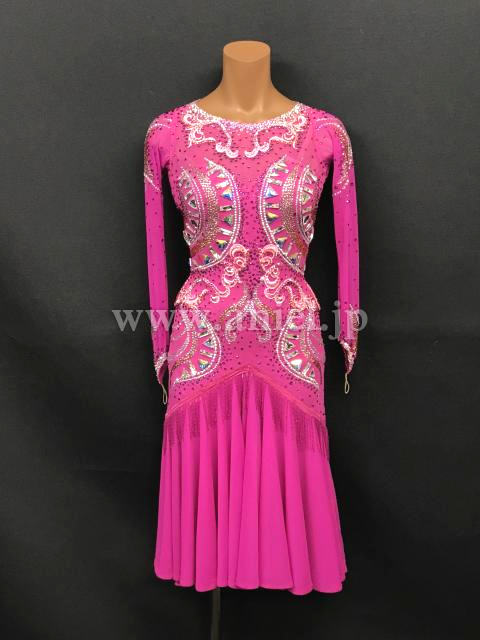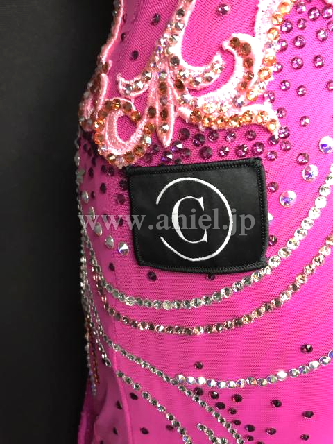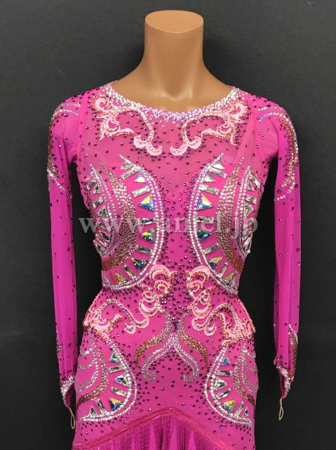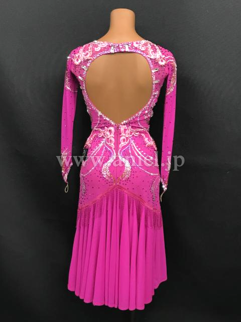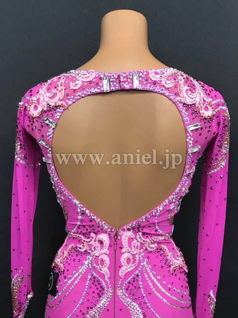 ピンクにゴージャスなオーロラのスワロフスキーストーンの飾りが煌めくドレスです。