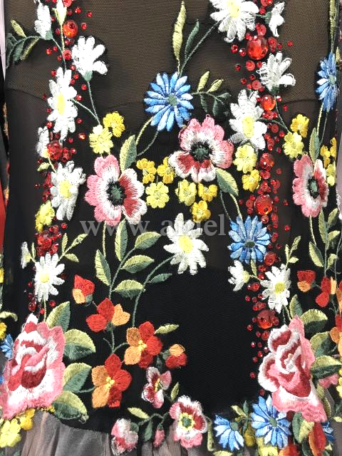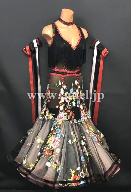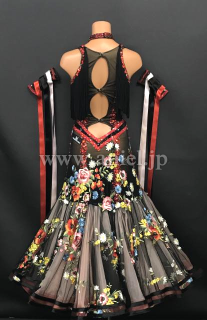 非常に華やかで美しい花柄レース生地のスカートがインパクト大のドレスです。