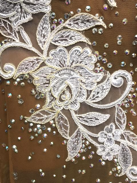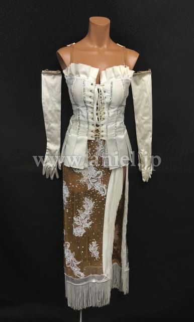 ベージュネットのスカートにはレース生地があしらわれ美しいです。