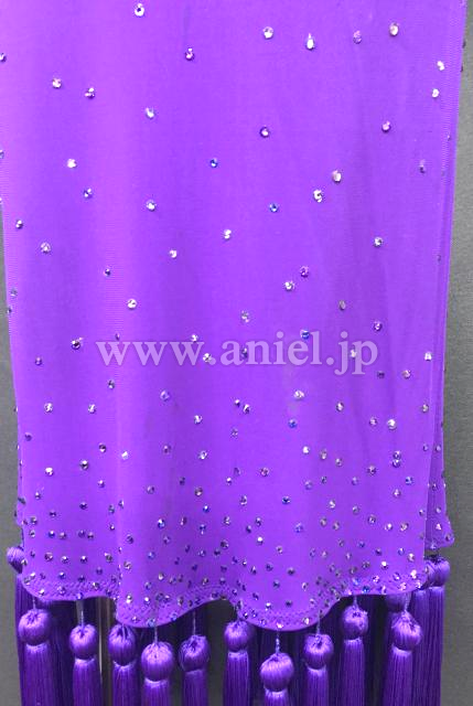 ロングスカートの裾にはタッセルフリンジが付けられています。