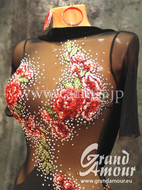 Grand AmourがスポンサーしているSabrina Manziがデモで着用したパソドレスです。ウクライナの民族衣装を想起させるようなエレガントで可愛らしいデザインのパソドレスです。スリットが大きく入っていて踊っている時スカートがよく広がります。スカートは膝あたりから下の黒い部分がシースルーになっていて、ロングスカートですが、透け感も楽しめてセクシーです。非常に個性的なパソドレスでデモを踊られてみてはいかがでしょうか。