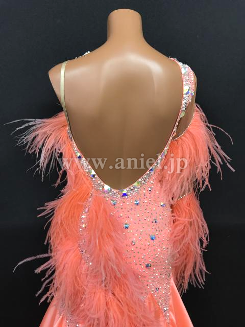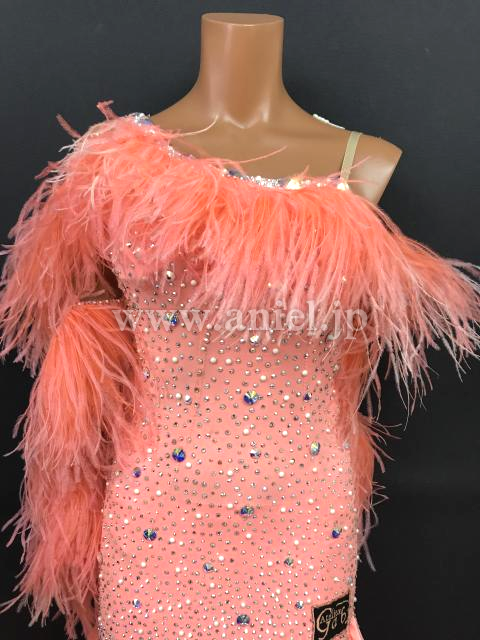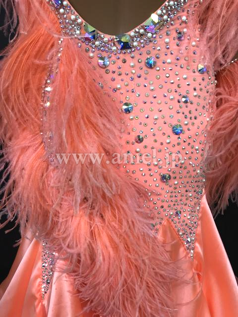 肩からヒップまで羽根があしらわれていて華やか。