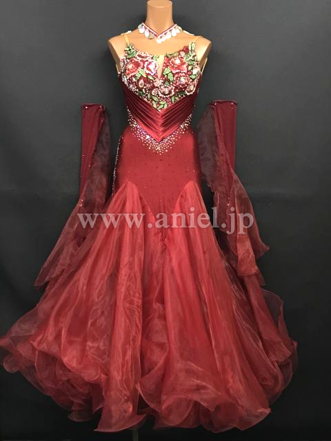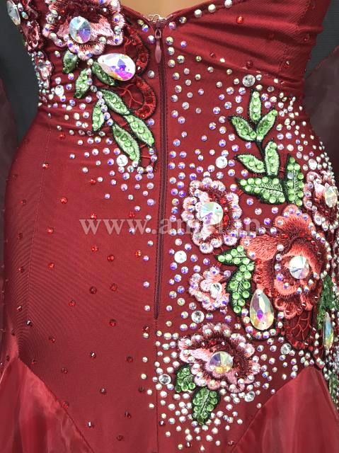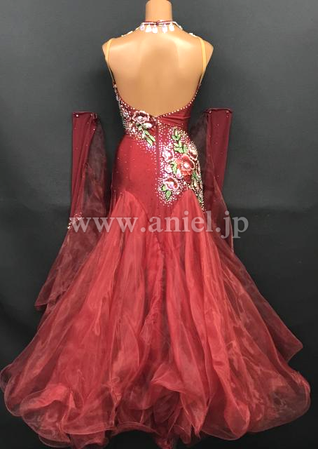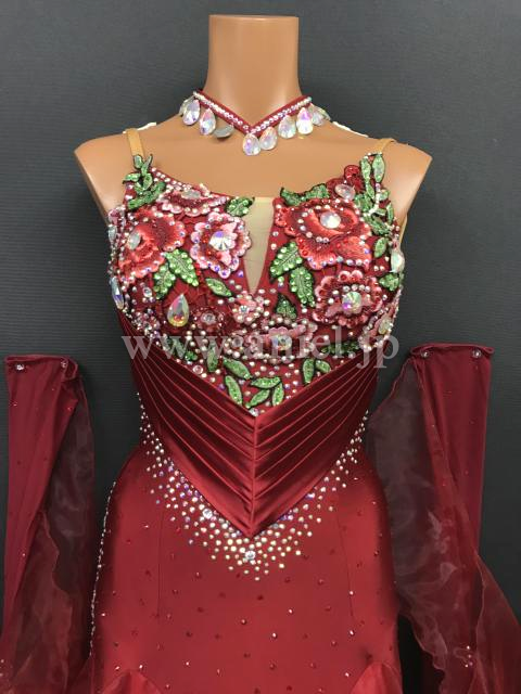 落ち着いた深紅のカラーが上品なドレスです。