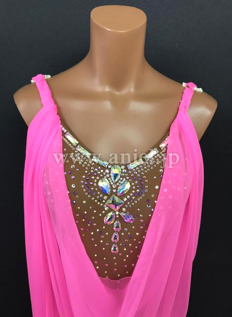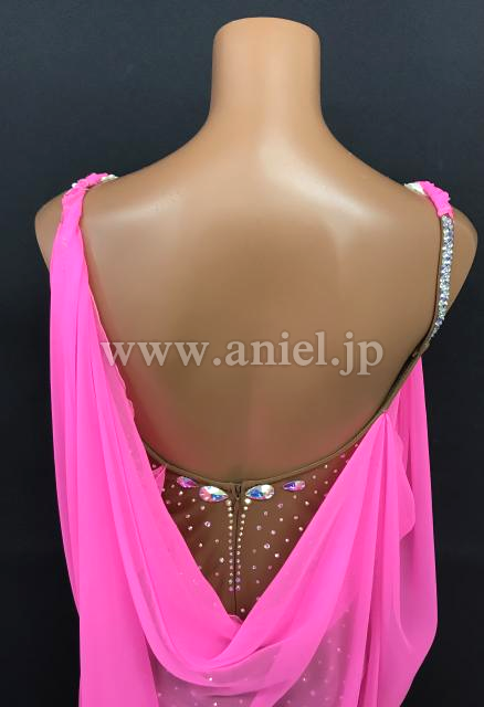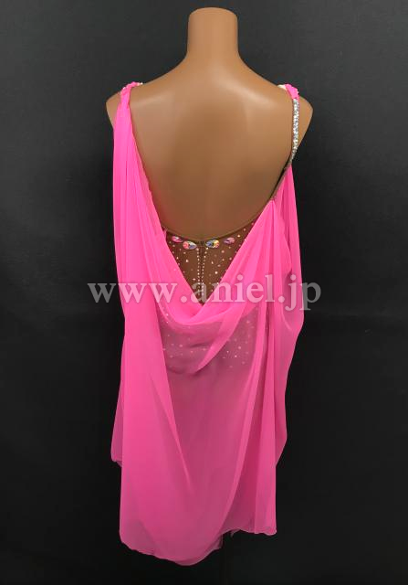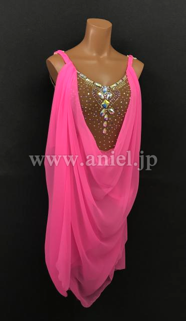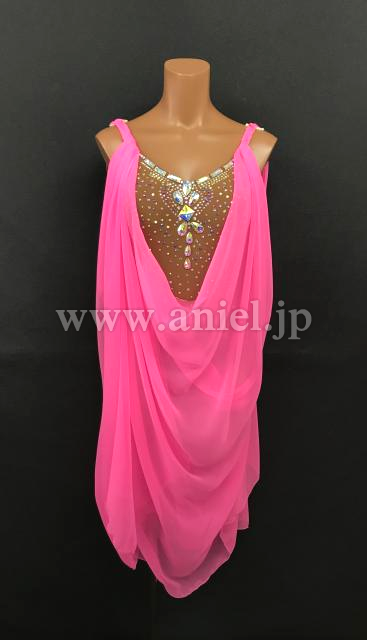 鮮やかなピンクのドレープがたっぷりとした華やかなルンバドレスです。