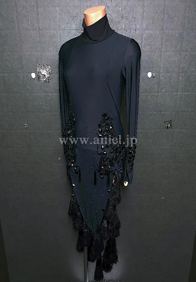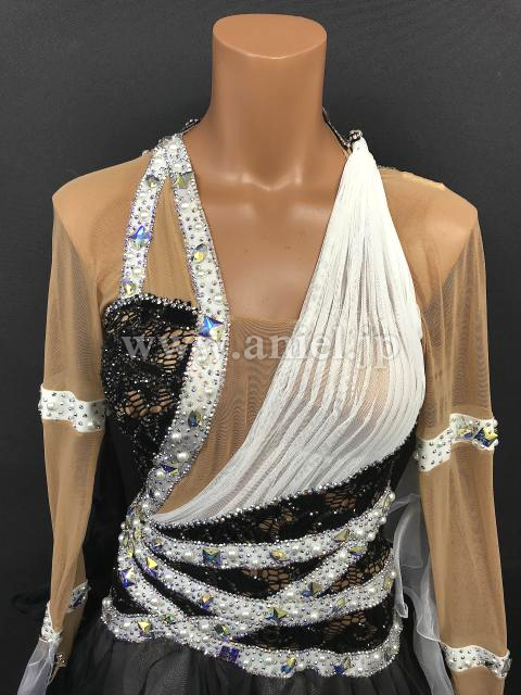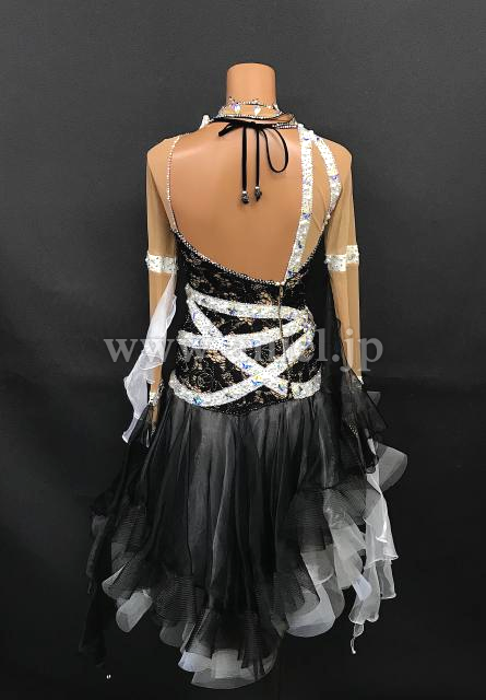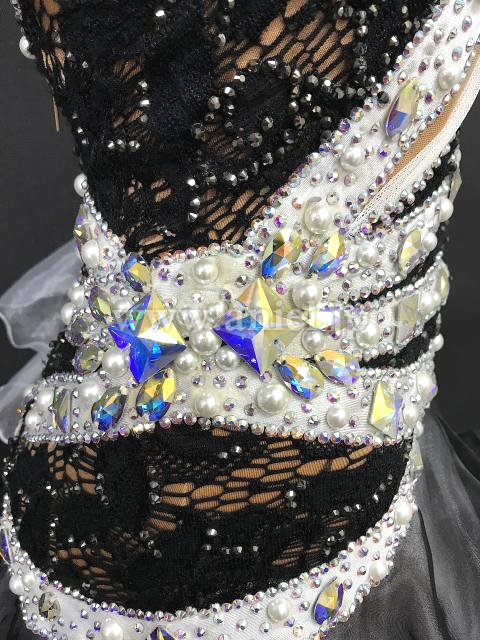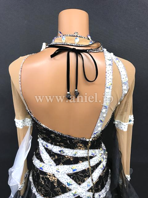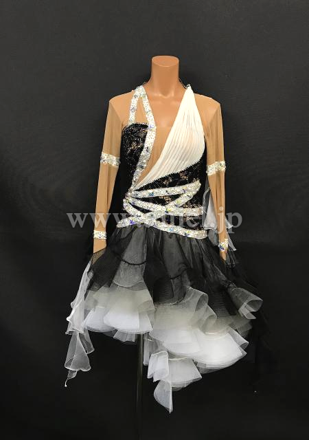 A309・黒白パールルンバドレス