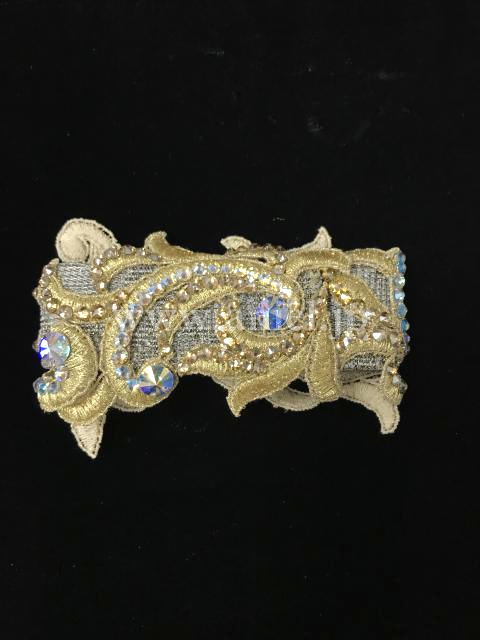 モチーフレースやベルトにはスワロフスキーストーンが飾られています。