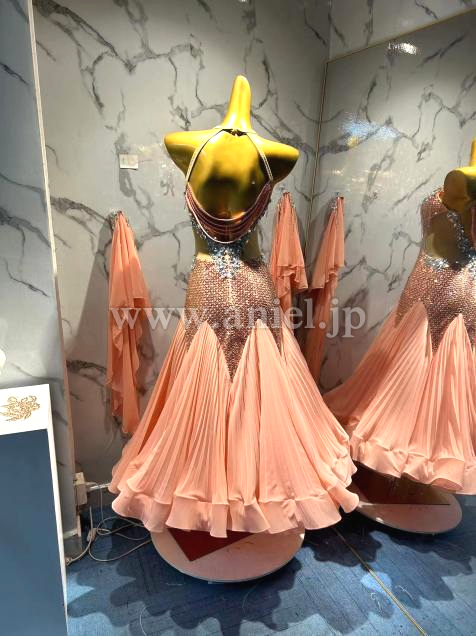 ピーチカラーがおしゃれなドレスです。