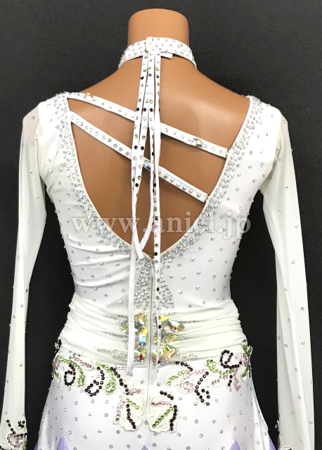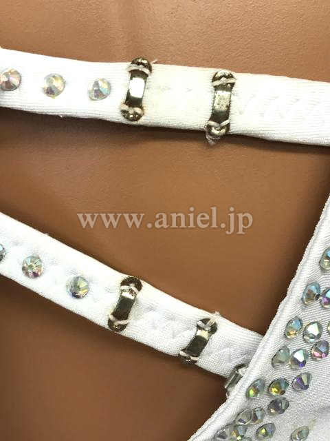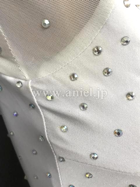 ボディは白のギャザーが寄せられ大粒のストーンがセンターに飾られています。