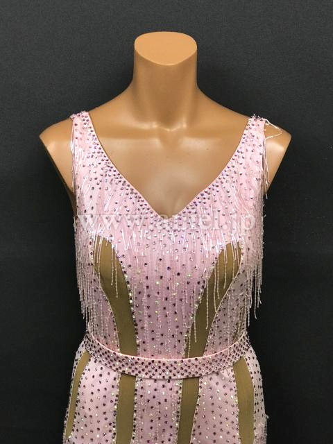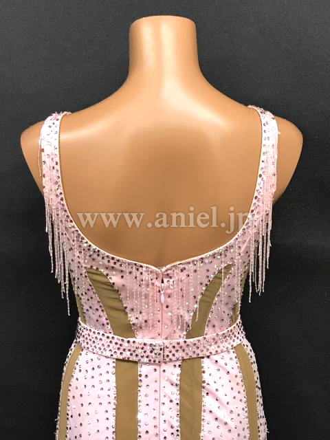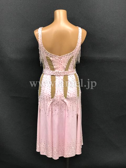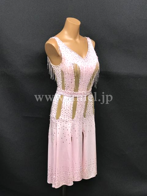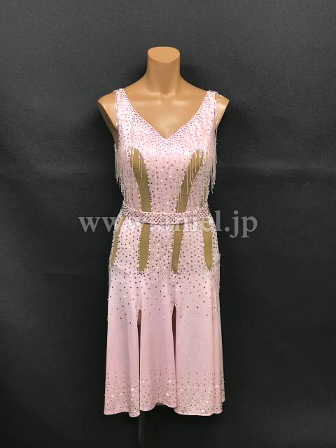 ピンクのボディにベージュの切り返しが模様のように入れられたドレスです。