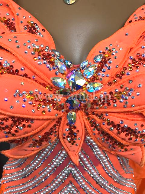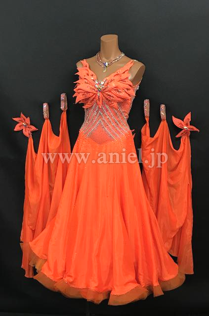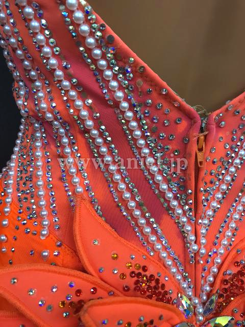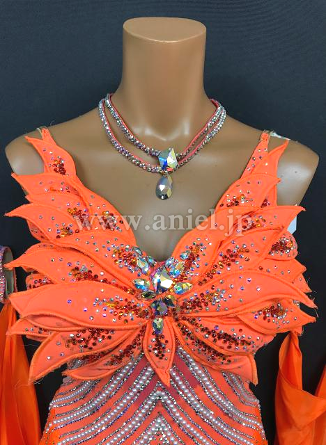 胸元の立体モチーフが華やかなドレスです。