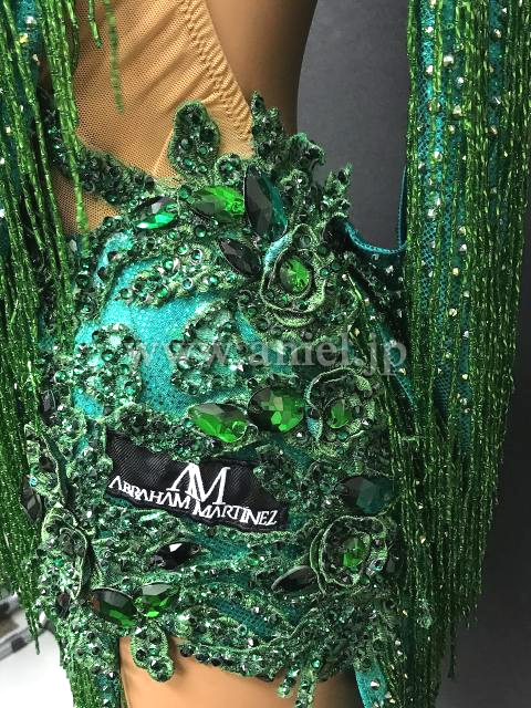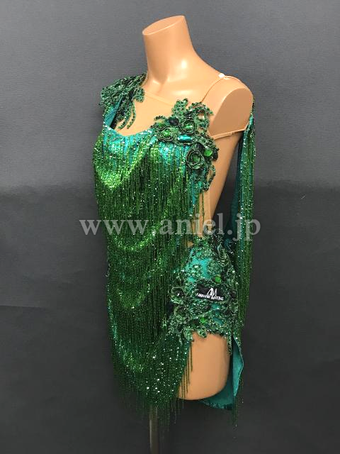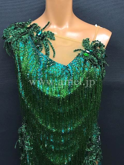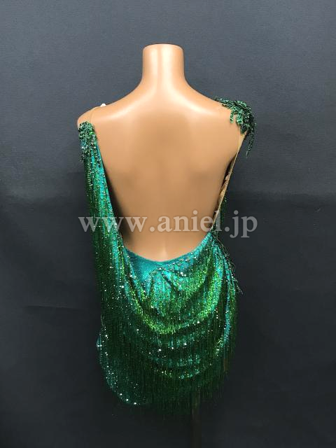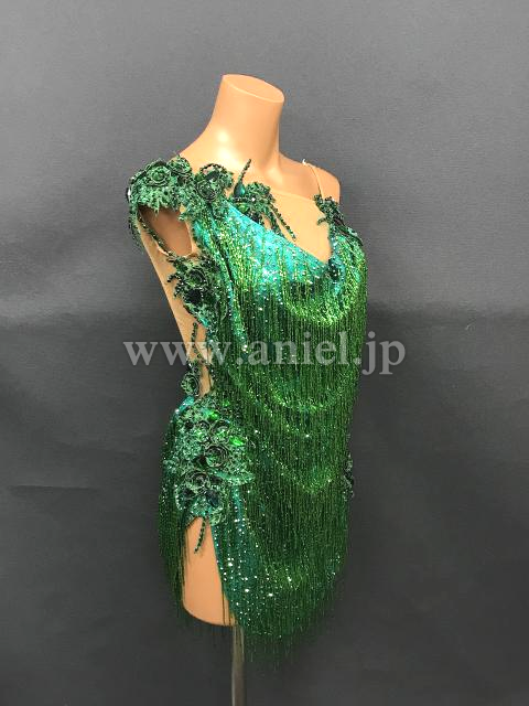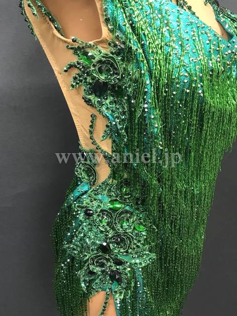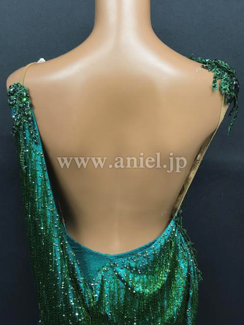 光沢のあるドレープ生地にビーズフリンジがびっしり。