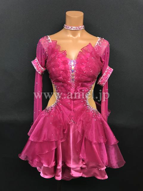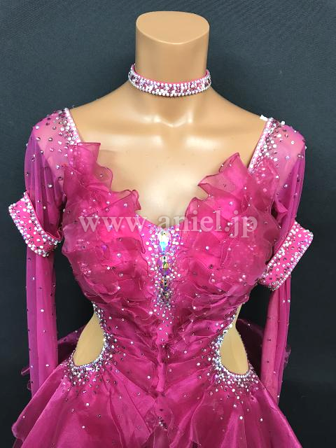 濃いピンクが華やかなドレスです。