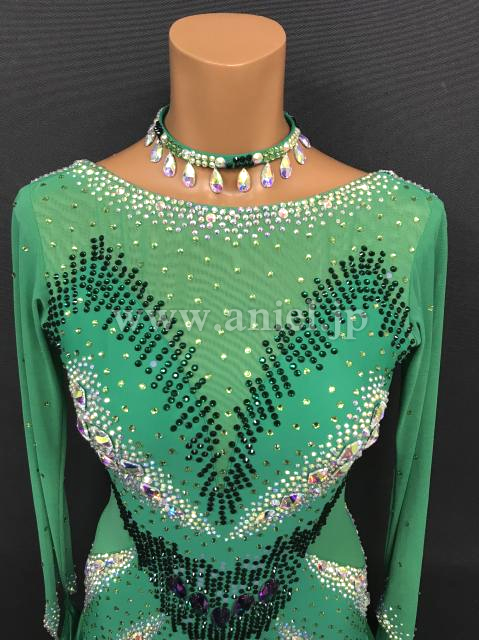 ストーンたっぷりの模様が華やかなドレスです。