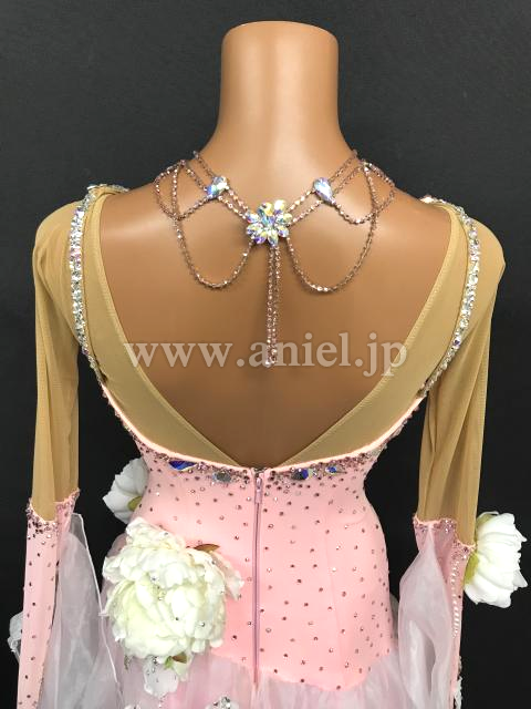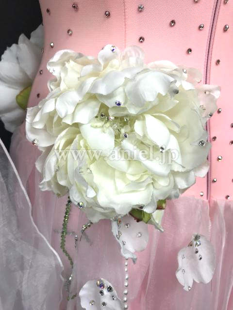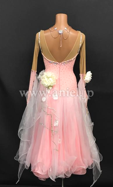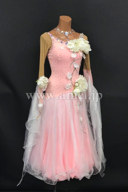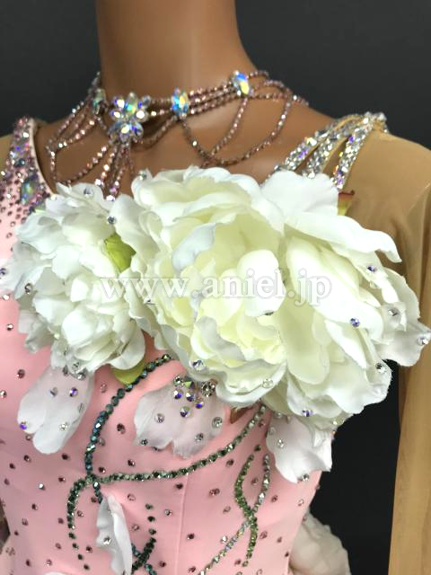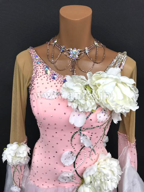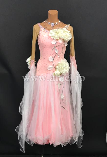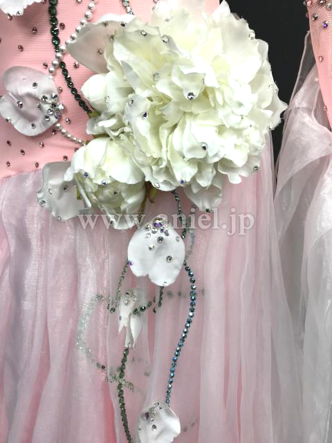 淡いピンクに白のお花が可愛らしいドレスです。
